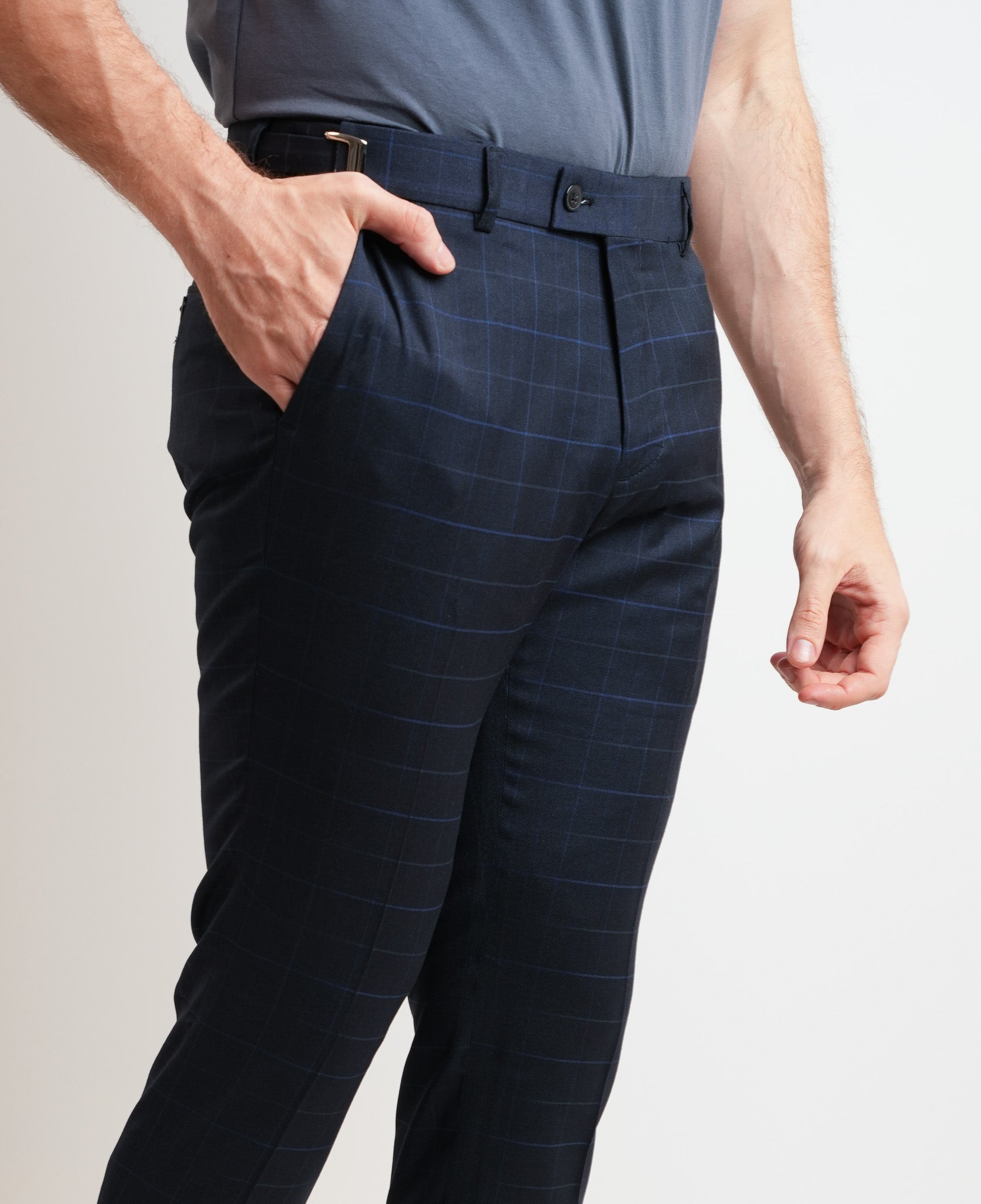Calça Alfaiataria com Ajuste Azul Noite Principe de Gales