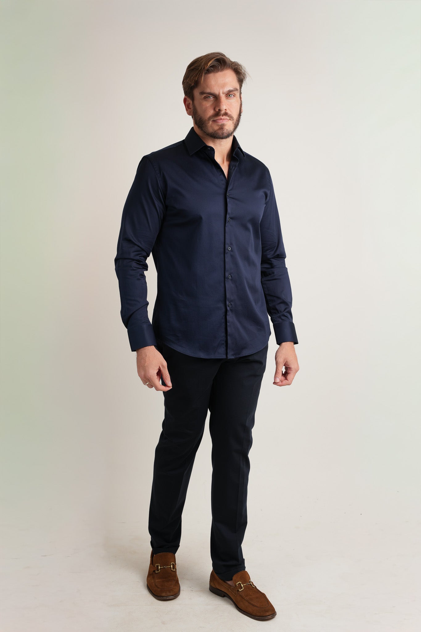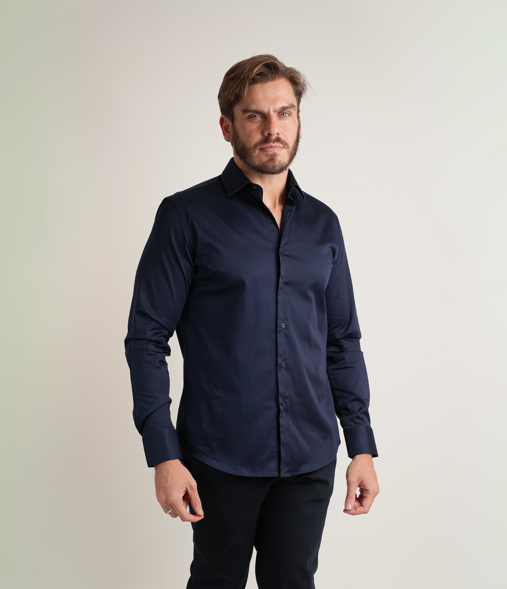 Camisa Manga Longa Acetinada Slim Azul Marinho