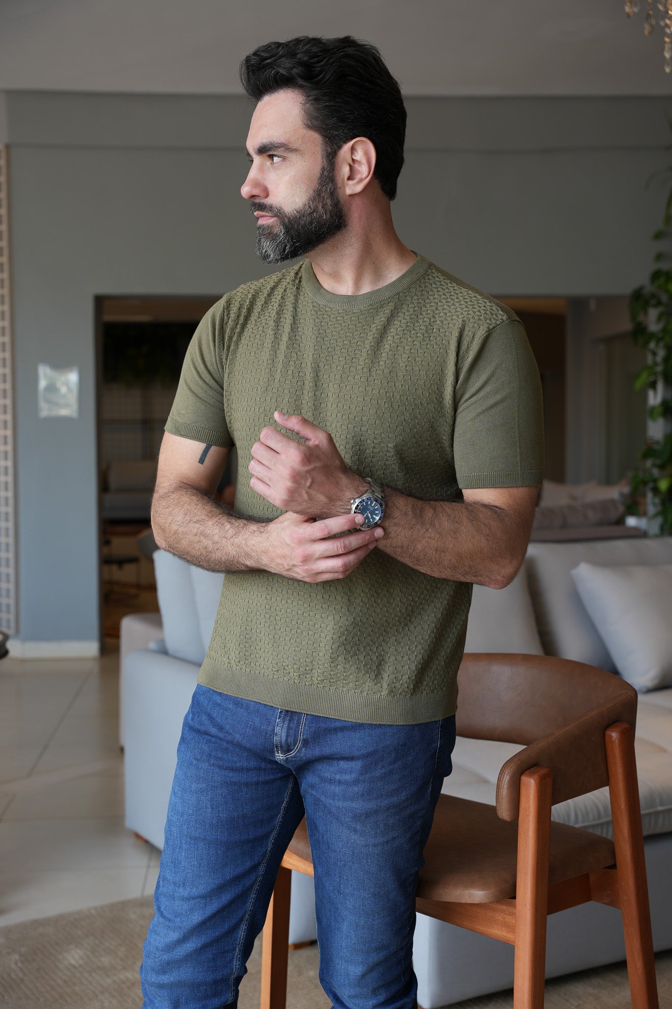 nove seu guarda-roupa com nossa exclusiva camiseta em tricô, a escolha perfeita para quem busca unir estilo e sofisticação em uma única peça. Feita com fios de alta qualidade, essa camiseta traz...