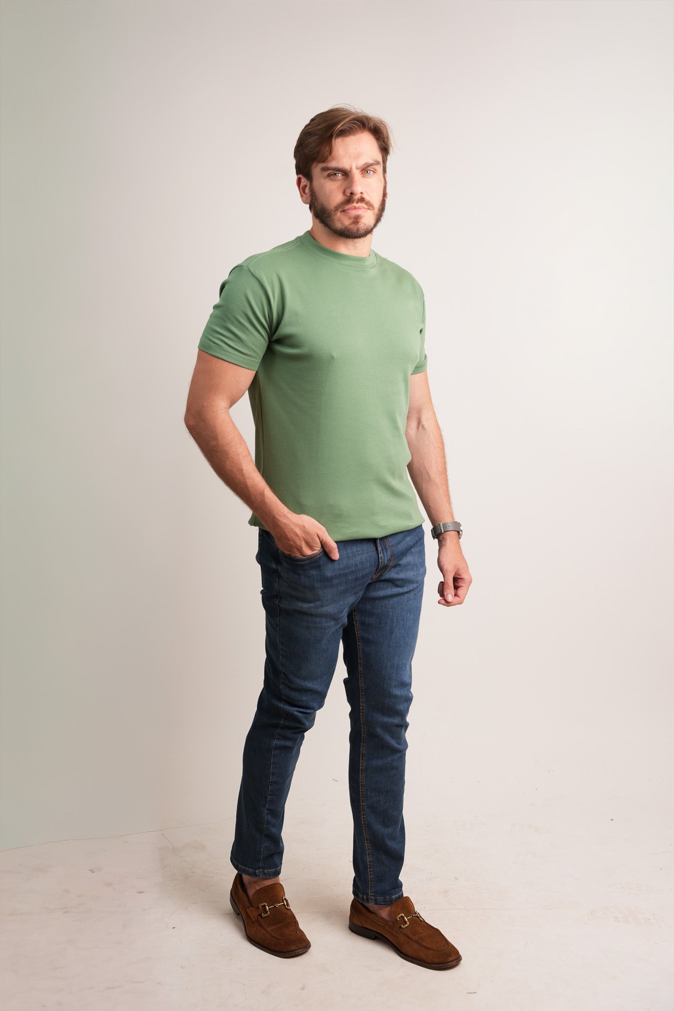 Camiseta Gola Média Suedine Egipcio Verde Claro