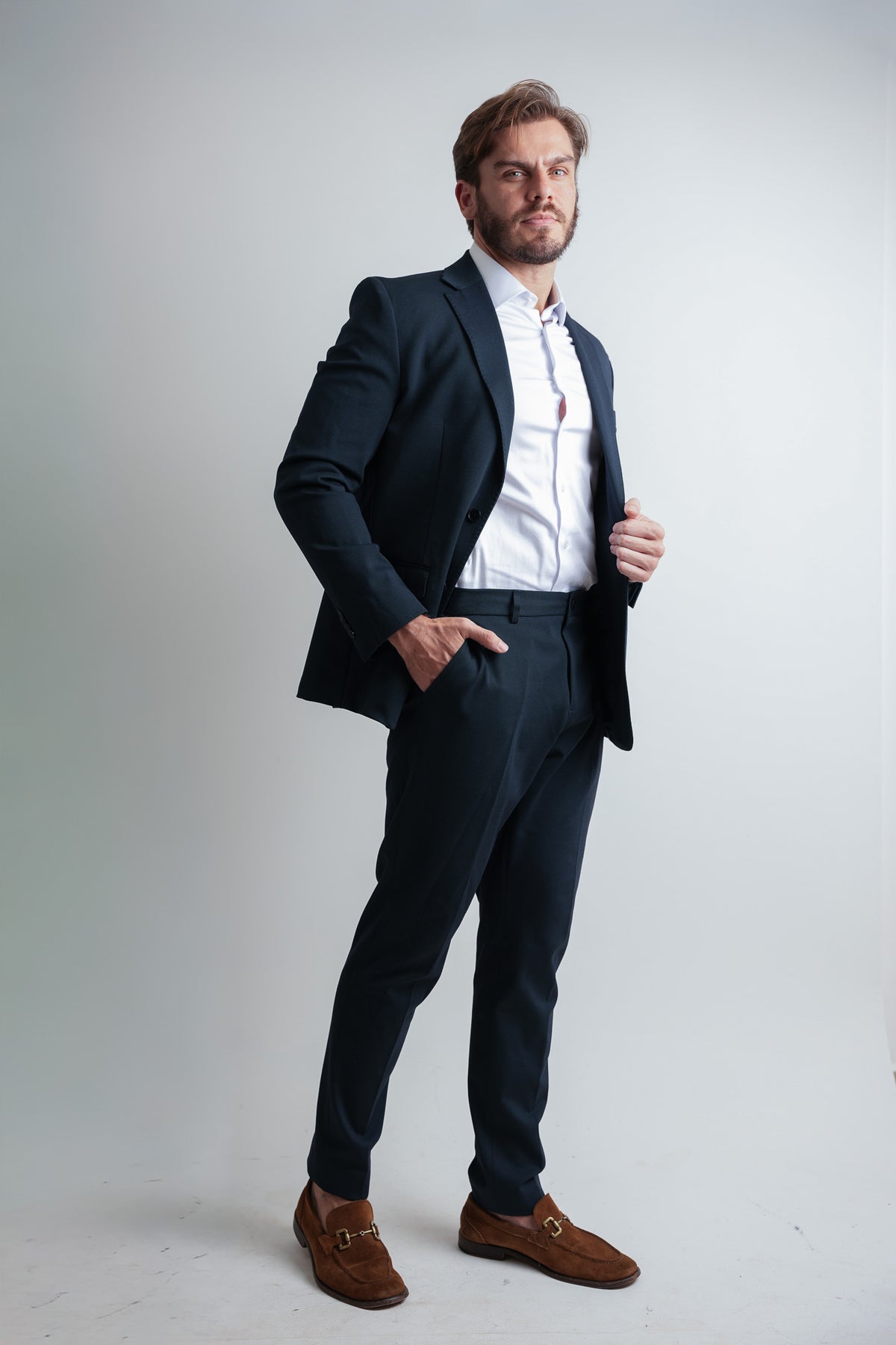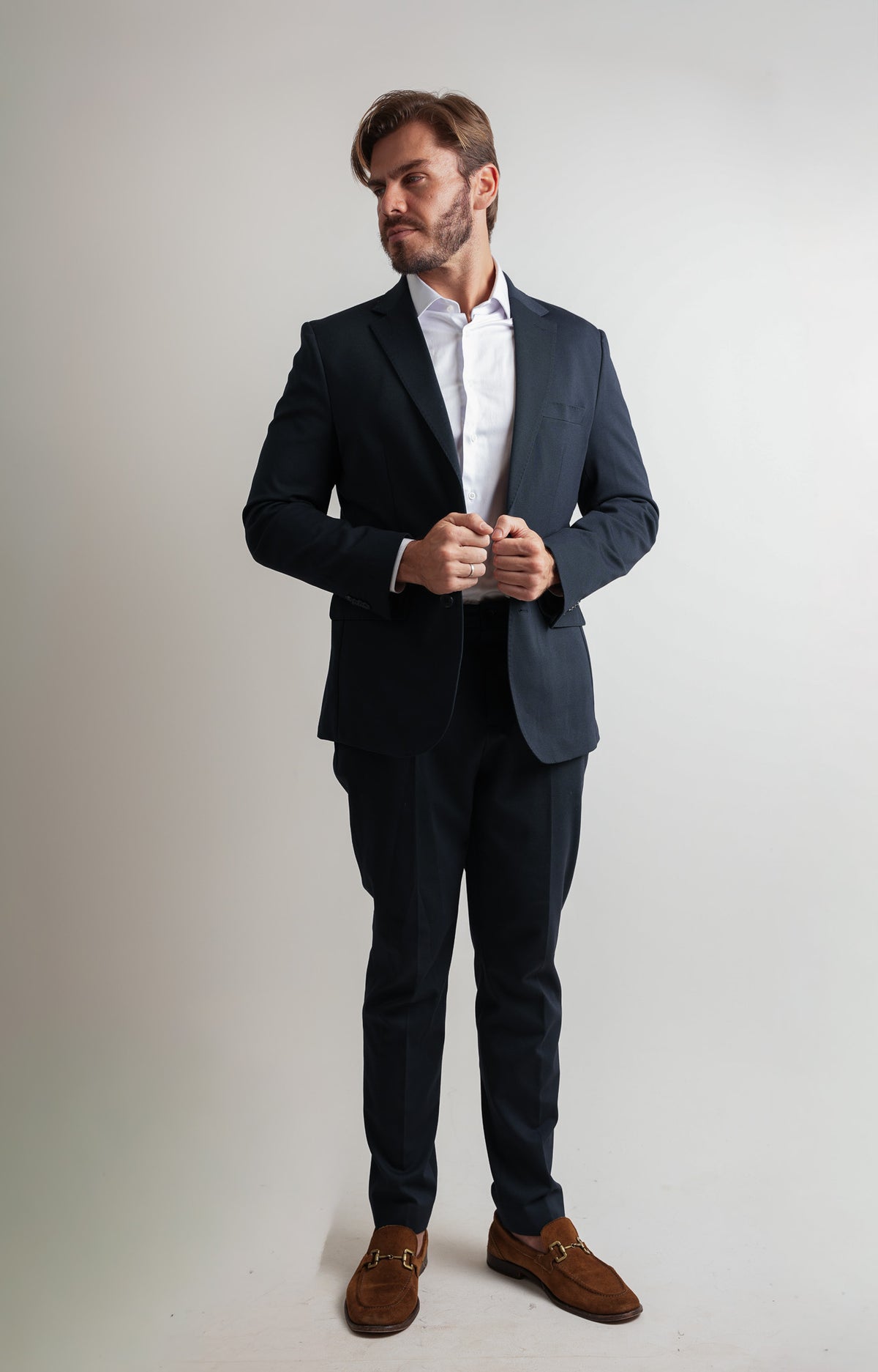 Nosso Costume Travel foi desenvolvido para homens que exigem performance e sofisticação no dia a dia. Com tecido elástico de última geração, ele garante liberdade de movimento sem abrir mão do caimento...