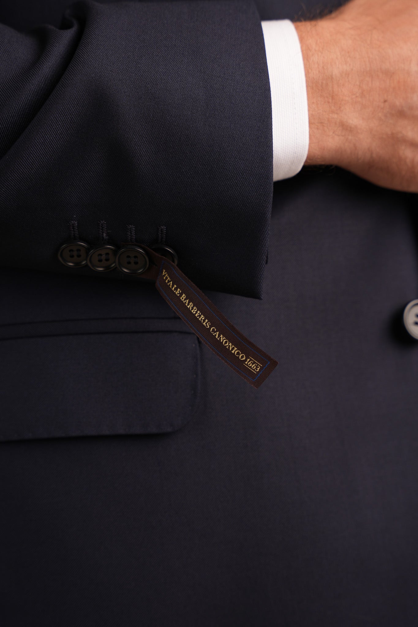 Tecido Italiano de lã fria Vitale Barberis Canonico. Paletó dois botões e três bolsos internos. Modelagem slim fit, com forro em acetato e duas aberturas no traseiro. Calça sem pregas, com bolsos...