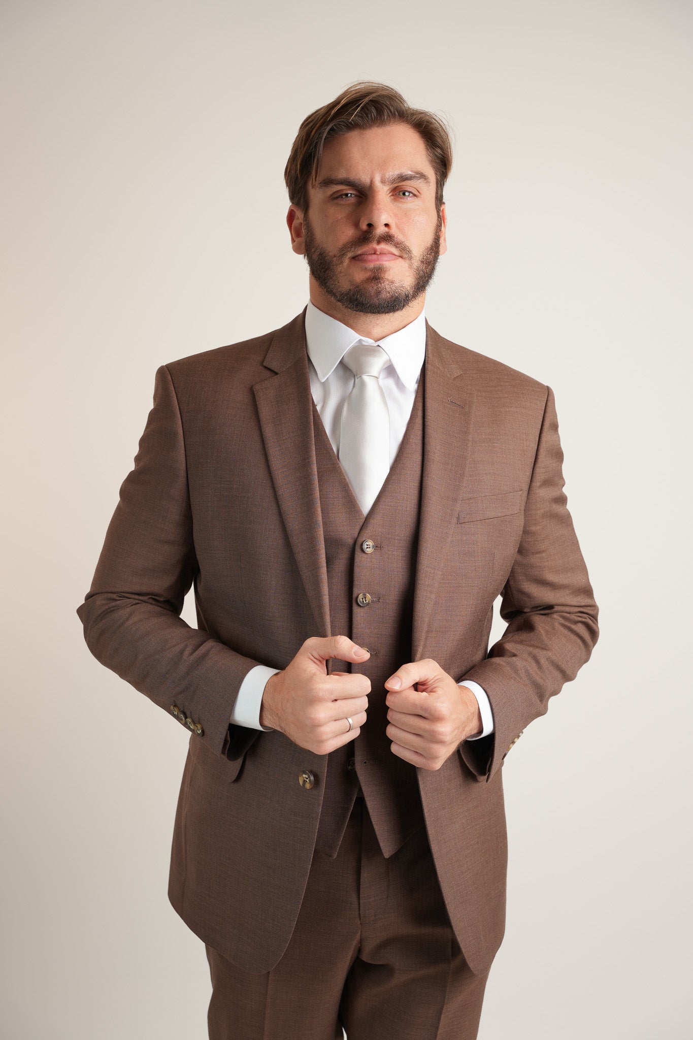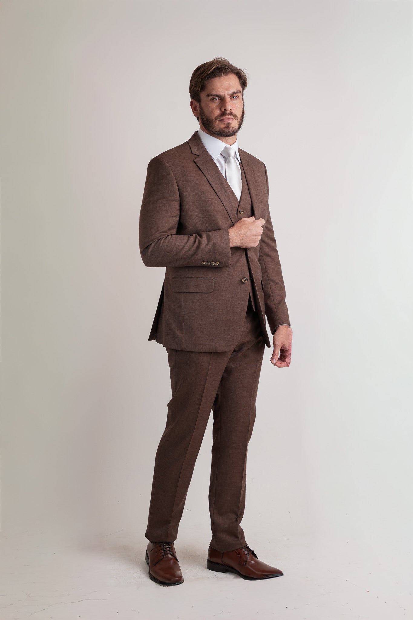 Terno Marrom é a escolha ideal para ocasiões que exigem presença e refinamento. Seu tom profundo proporciona sobriedade com personalidade, sendo uma alternativa versátil ao tradicional preto. Produzido em tecido de alta...
